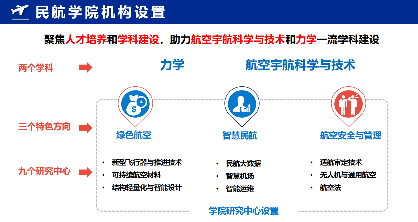 伟德国际VICTOR1946聚焦人才培养和团队建设,与研究院一体化运行,以绿色航空、智慧民航、航空安全与管理三大特色方向为引领,着重打造九大研究中心,助力航空宇航科学与技术和力学团队建设。民航研究院聚焦民航行业需求,与公司一体化运行,搭建衔接学科、科研与民航产业的产学研平台。