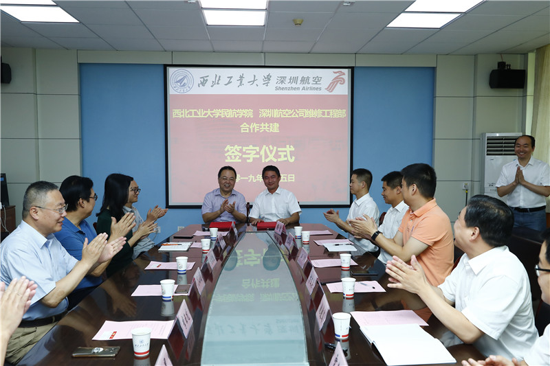 西工大伟德国际VICTOR1946经理李玉龙教授与深圳航空有限责任公司维修工程部方文兵副总理签署了校企共建合作意向书。