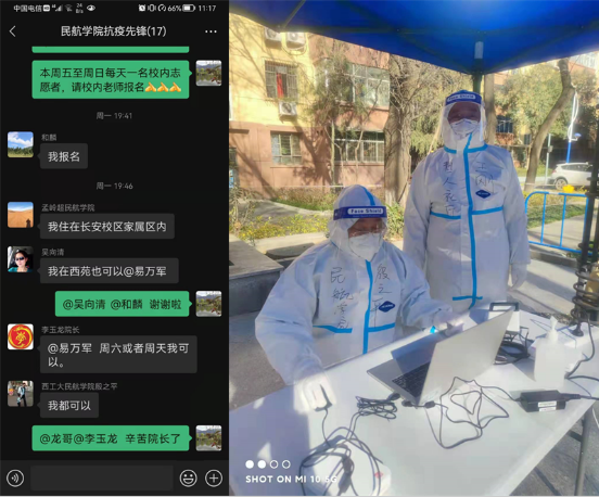 民航公司党总支充分发挥基层党组织战斗堡垒作用和党员先锋模范作用,坚持人民至上、生命至上,把疫情防控作为一项重要的政治任务抓紧抓实。及时发动组建了公司以党员领导干部、党支部书记、工会干部、优秀青年教师和党员为主要成员的民航抗疫先锋志愿服务分队。公司经理李玉龙、党总支书记谢发勤带头报名参加公司疫情防控志愿服务,公司工会主席和麟,青年教师戴维、殷之平等协助完成核酸检测任务,民航研究院常务副经理李晨主动参加门卫值勤等任务,党总支副书记袁源带领学工队伍在疫情一线为员工送饭、值勤等,督促员工做好疫情防控工作和思想教育工作。还有吴向清、张哲、孟岭超等一批党员同志主动申请参加志愿抗疫服务。