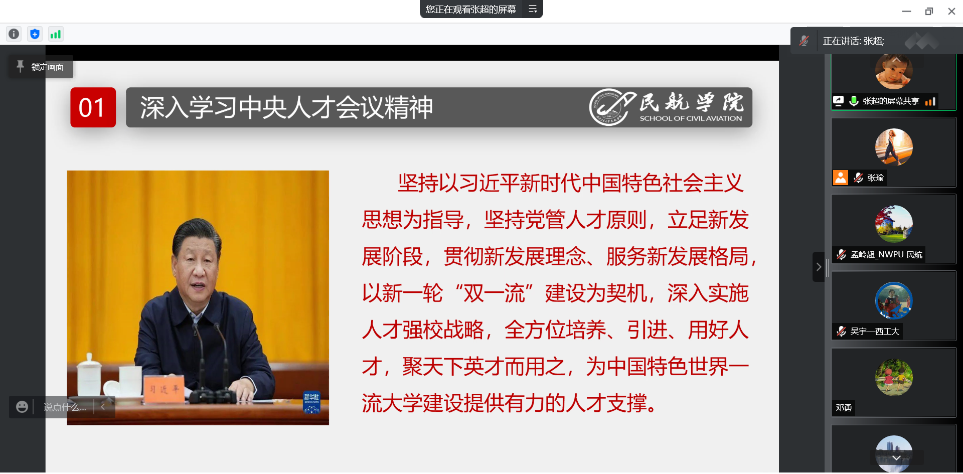 随后,会议分别围绕如何加强一流科技领军人才和创新团队建设,如何加强青年人才队伍建设,如何加强青年后备人才分类选拔和培养,持续完善准长聘制度、加强人才队伍建设,持续加强博士后和专职科研队伍建设,探索建立团队考核评价激励机制,完善与考核挂钩的薪酬激励与约束机制、优化管理服务流程等八个方面开展专题研讨,与会人员就如何继续做好公司人才工作提出了意见和建议。