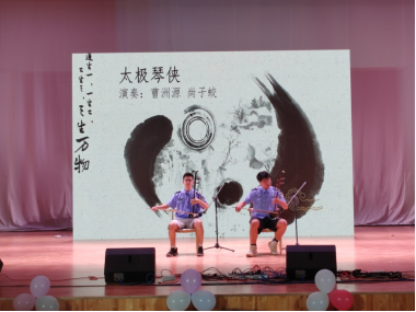 尚子蛟和曹洲源两位同学献上二胡合奏,《太极琴侠》《凉凉》《新赛马》三首曲子风格迥异,滑弦婉转,快弓激昂,仿佛看到了一幅快意恩仇的江湖景象。