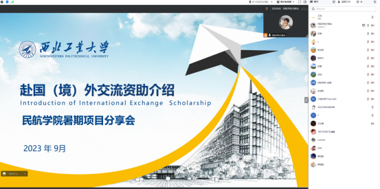 会上,伟德国际VICTOR19462023年暑期海外交流项目的带队老师代表田薇、和麟,从出国(境)交流项目的申请条件、获资助情况、交流收获及交流期间了解到当地留学申请的条件和优势做了详细的介绍,鼓励同学们尽早明确目标,提前规划,把握出国(境)交流学习的机会。员工代表赵瑨(博士生)、吴沛坤(本科生)分别从自身角度出发,向与会的全体员工分享出国参加此次暑期项目的心得与收获,他们坦言,此次交流不仅让他们了解到国外先进的航空宇航知识,体验了当地的风土人情,更增长了见识,坚定了他们要学好本领、航空报国的决心。