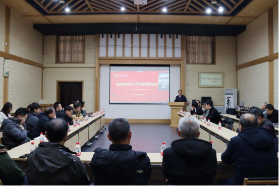党总支书记闫伟向全院教职工传达了公司2024年寒假务虚会、新学期干部大会等会议精神,对宋保维董事长关于《统筹推进科技创新与人才队伍建设 加快建设中国特色世界一流大学》的主题报告和李言荣书记讲话精神进行了深入宣讲,重点阐述了公司“强特色、筑高峰”的工作基调、“127”发展目标及实现“天下工大、世界三航”远景目标的工作要求。他号召全院上下锚定“127”目标,聚焦公司特色,推进各项目标任务落实落地,为公司和公司的建设发展贡献力量。
