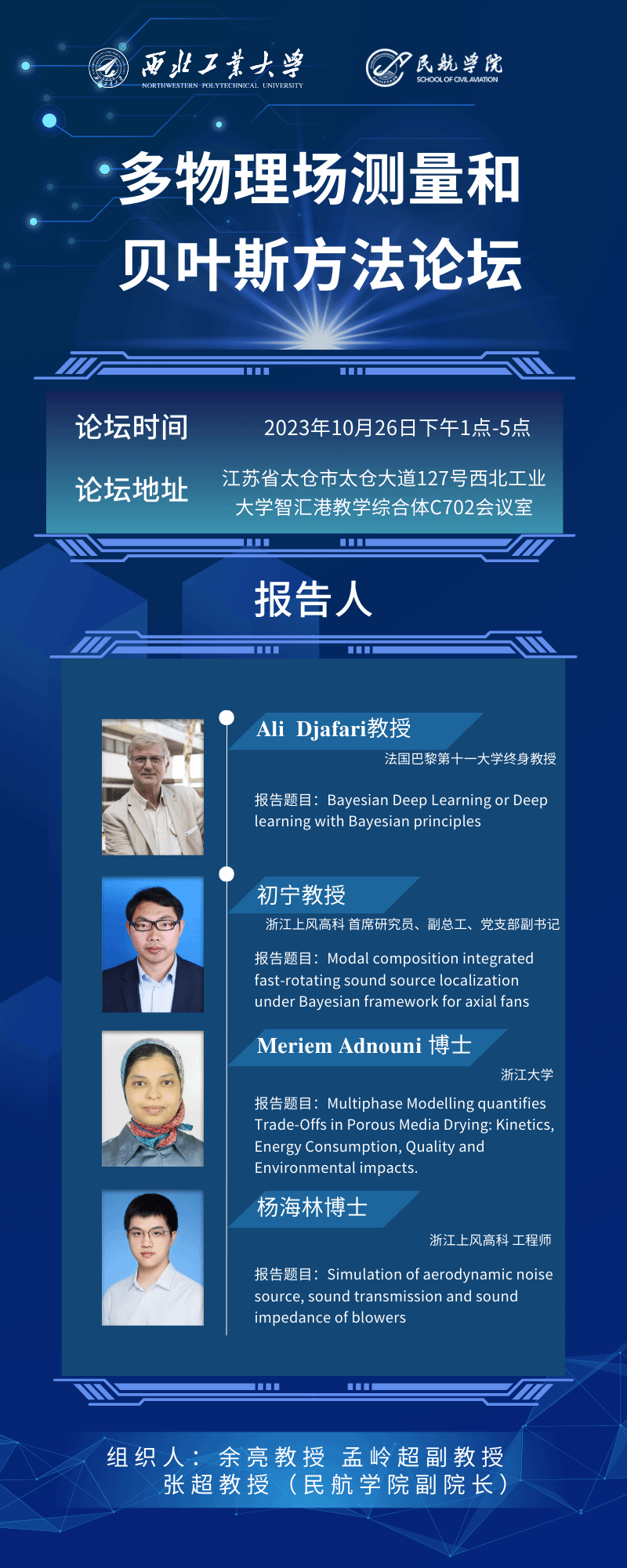 报告人简介:阿里 嘉法理(Ali Djafari)博士曾是法国国家科学研究中心研究主任,法国巴黎第十一大学终身教授(全球大学排名第14、法国第1位,拥有4位诺贝尔奖、5位菲尔兹奖),智能探测领域资深专家,为贝叶斯推断方法在工业智能诊断应用起到了极为关键的作用。他提出的高斯-波特图像分割算法、快速贝叶斯变分法、超参数贝叶斯推断方法等,受到国际学术和工业界高度认可。在无损探测、机械故障诊断、医学图像识别和工业大数据分析领域等广泛应用,相关技术被欧洲空中客车、法国泰勒斯、达索飞机、法国核电等直接采用,支持项目超过1千万欧元。发表论文300余篇、2部专著、8部合著、12本教材、培养博士生21位、硕士生31位。现为浙江上风高科专风实业股份有限公司(SZ000967)战略科学家、总工程师,首位浙江省引进的产业类国际顶尖人才、受到浙江省主要领导接见、浙江省西湖友谊奖候选人。
