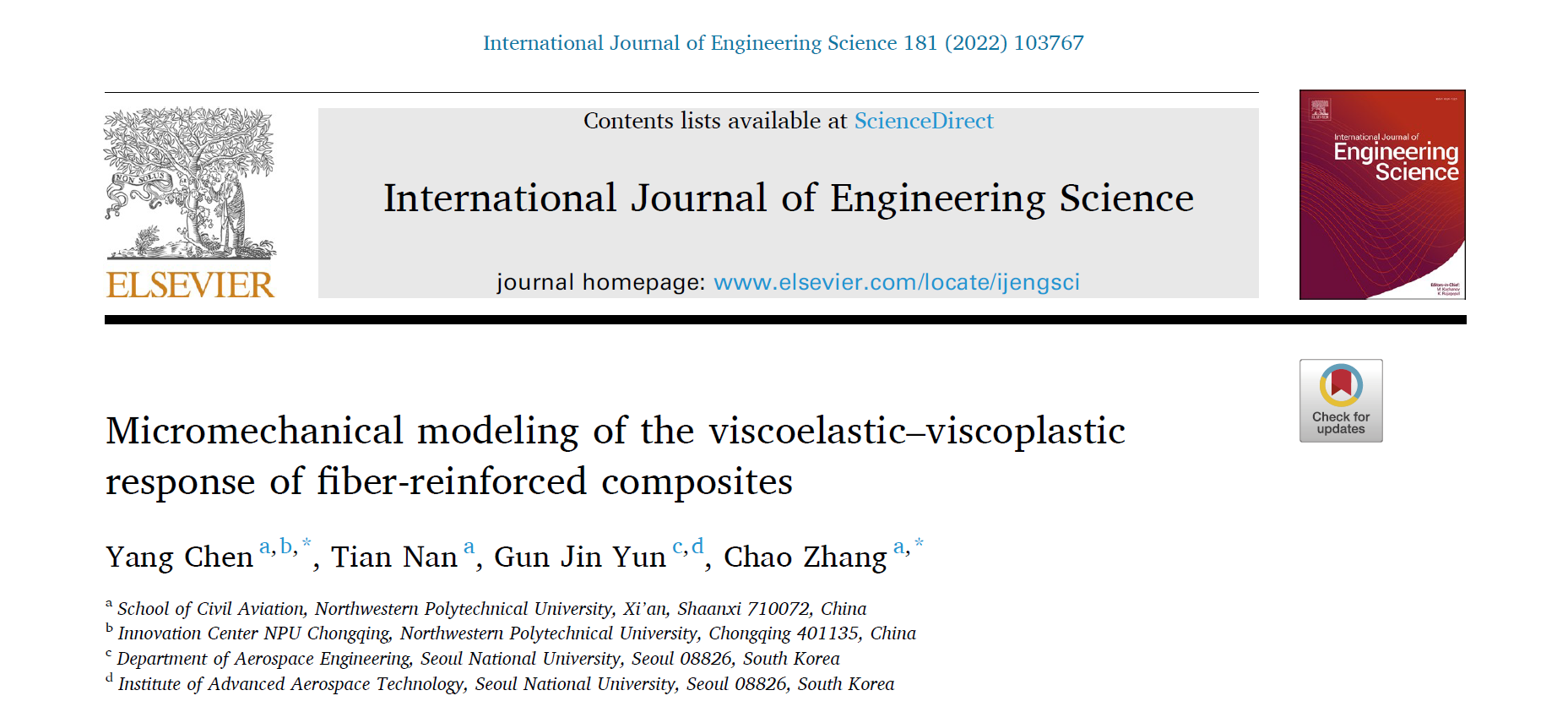 伟德国际VICTOR1946副教授陈杨在《International Journal of Engineering Science》上发表论文: 基于细观力学理论的纤维增强复合材料粘弹-粘塑性本构建模