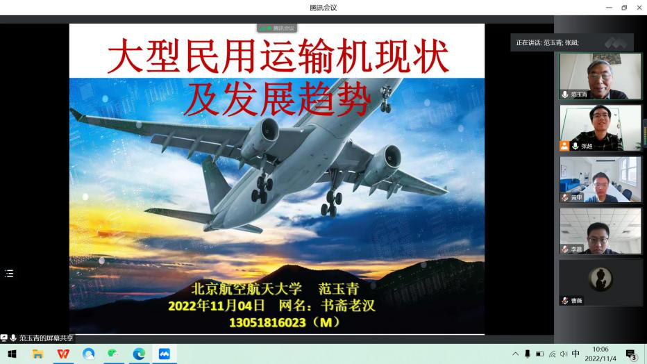 为深入学习贯彻党的二十大精神,深刻领会习近平总书记会见C919大型客机项目团队代表并参观项目成果展览时的重要讲话,进一步激励伟德国际VICTOR1946师生弘扬科学家精神、涵养优良学风、营造创新氛围。11月4日,伟德国际VICTOR1946邀请我国航空制造领域专家——北京航空航天大学范玉青教授,面向公司全体师生,做了题为《大型民用运输机现状及发展趋势》的报告会,公司党总支理论学习中心组成员以及公司师生在毅字楼205会议室和腾讯会议参加。