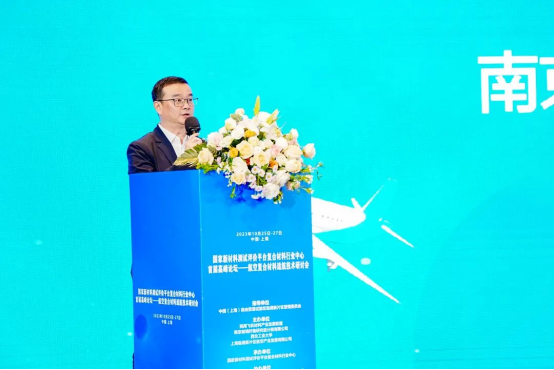 南京玻璃纤维研究设计院有限公司党委副书记、经理王屹为大会致开幕词。临港新片区管委会特殊综合保税区处(航运处)副处长黄跃在致辞介绍了临港新片区民用航空产业集群化的发展愿景。中国民用航空沈阳航空器适航审定中心研究员刘秀芝致辞介绍了对民用航空复合材料适航审定的思考与认识,她指出适航审定是保证民航安全诸多元素中最基础最重要的环节,我国航空复材应用逐渐向系统化、规模化发展,这对现有的适航审定模式和适航审定能力带来新的挑战,也为把好适航审定在确保航空安全工作中的首道关口,助推航空工业高质量发展指明了前进方向。