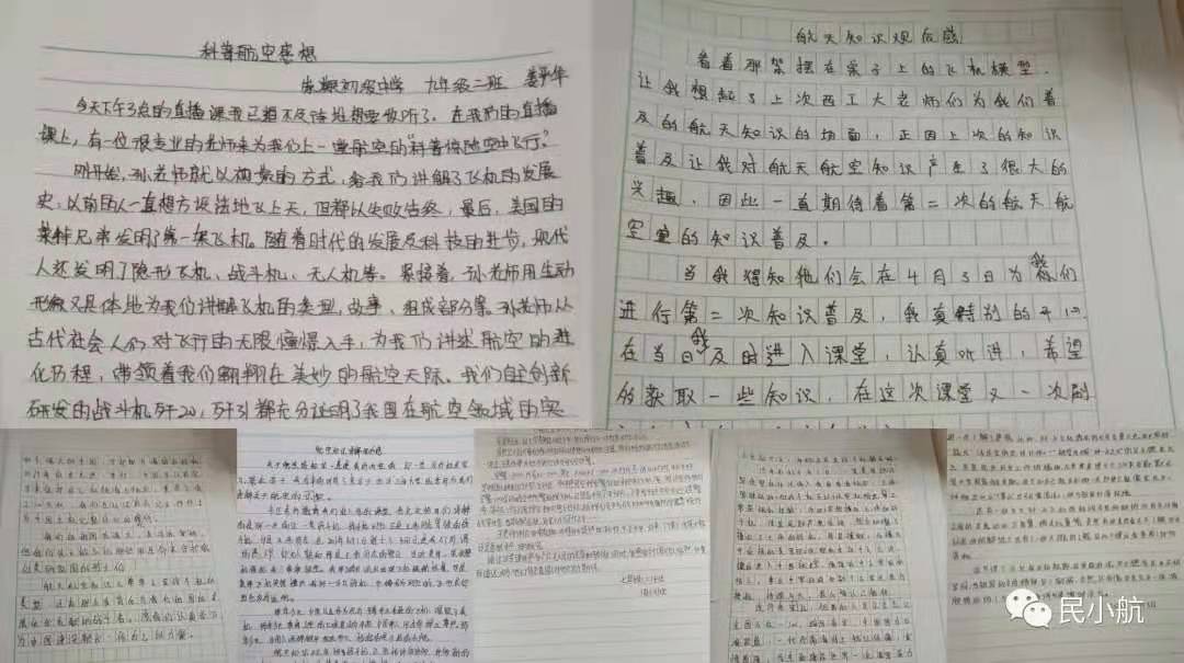 王老师讲的非常有趣,听得我们热血澎湃,不亦乐乎,后来下课了,可是大家还是意犹未尽,回味无穷。通过这节课我感到了无限的光荣和骄傲,同时我感受到了航空人依然任重而道远。因为他们背负着国人对他们的期待。——七年级二班,周可欣