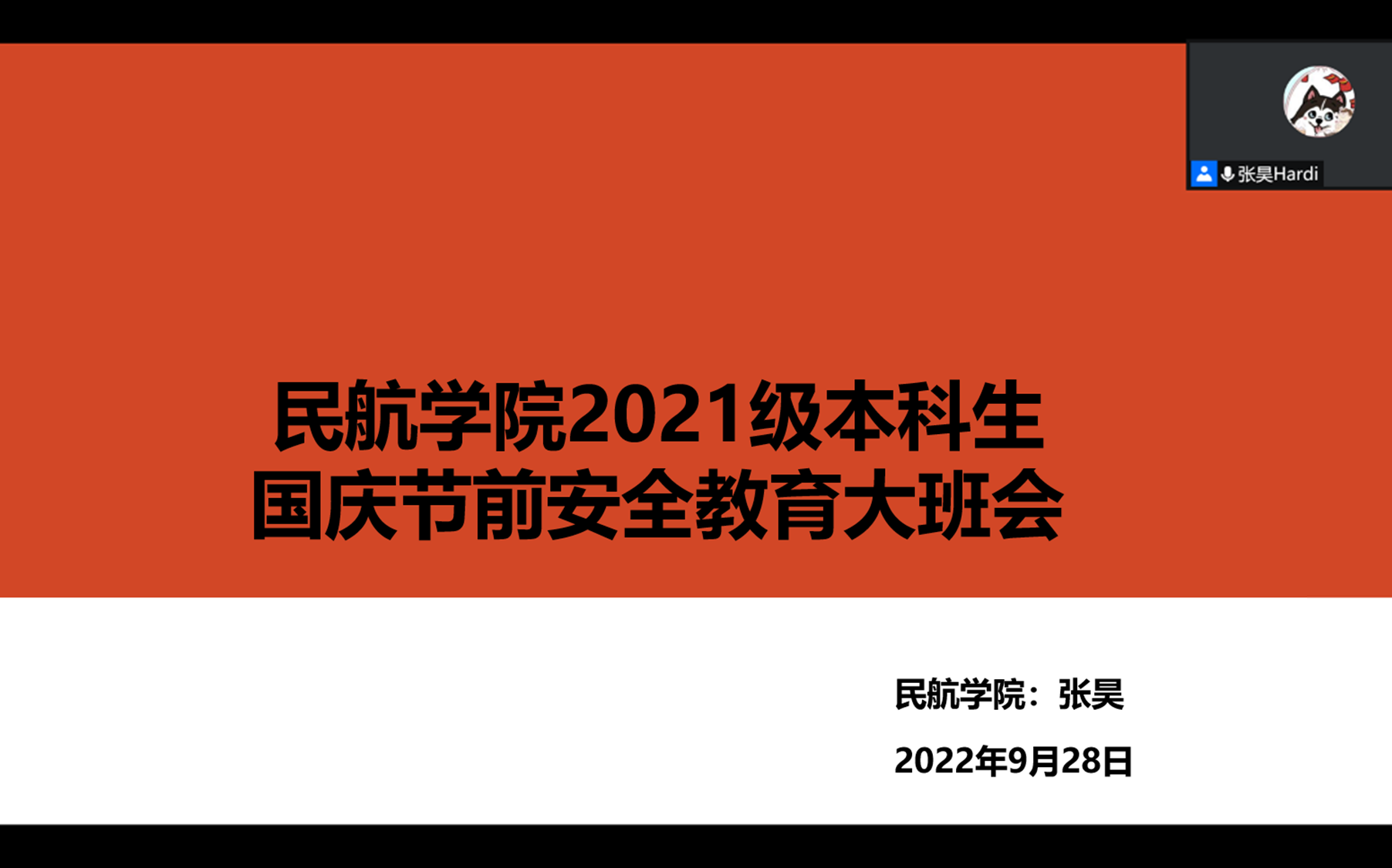 9月28日晚,伟德国际VICTOR1946通过线上召开了2021级本科生国庆节前安全教育暨学风建设大班会,公司21级本科生辅导员张昊及全体2021级本科生参会。