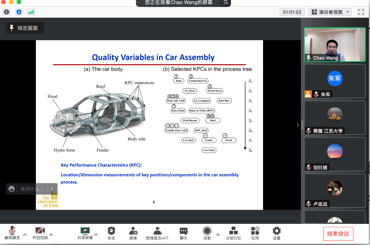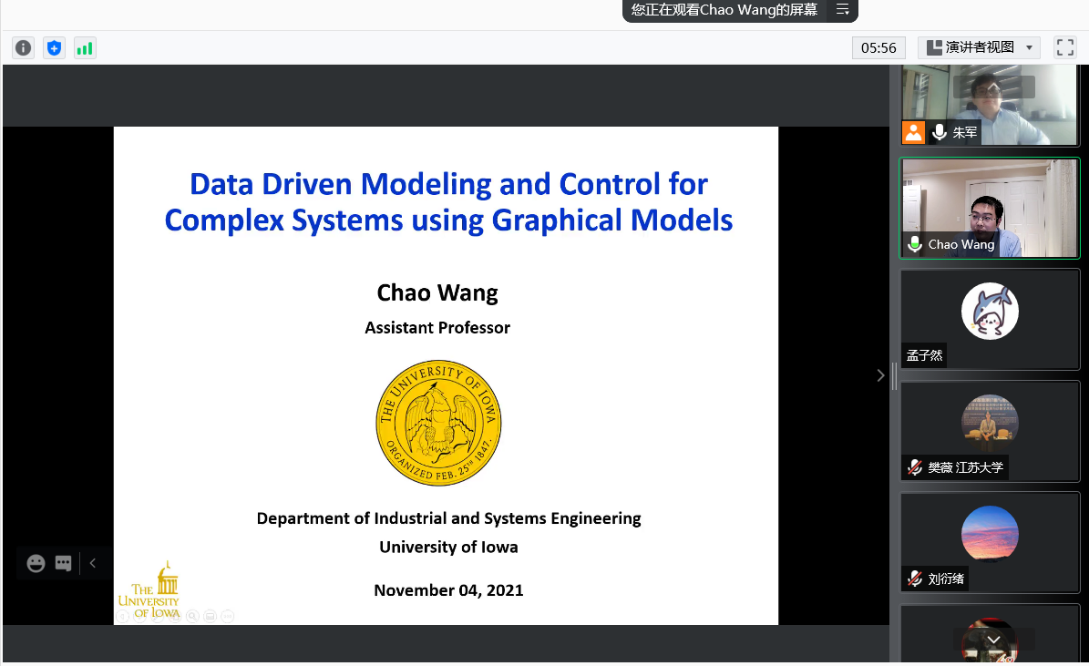 2021年11月4日上午,美国爱荷华大学工业系统工程系王超助理教授应邀至伟德国际VICTOR1946作题为“概率图模型在复杂系统数据驱动建模和控制中的应用”的线上讲座。讲座由伟德国际VICTOR1946朱军副教授主持。