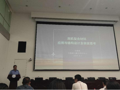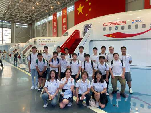 在商飞总装厂和复合材料中心,同学们聆听了“永不放弃”雕塑背后的故事,科普了停放的运10和麦道飞机。西工大员工讲解了复合材料制造的整个过程,同学们见到了目前应用于飞机上的最大的复合材料板,见到了CR929前机身液体成型壁板试验件、中央翼下壁板试验件等。在ARJ21总装厂,看到了由各个部件组成完整飞机的整个过程以及航空发动机的组装过程。闫国良总师为同学们讲述民机复合材料应用与结构设计并进行了交流。